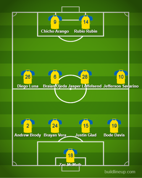 6 changes from the team that lost at home to Houston. Zac McMath gets the start over Gavin Beavers, who will probably not start after allowing 3 goals at home. Vera is back into the side, and Braian Ojeda starts for rotation purposes. Same with Andrew Brody and Rubio Rubin. Diego Luna has been a revelation so far in 2023, and he gets his spot in the lineup back. This is a game that will test RSL’s new depth.