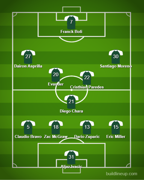 The answer: probably not that much. They really can’t afford to rotate that much. Under normal circumstances, this might be a game where Bryan Acosta might be able to start for Diego Chara and play for 60 minutes. But this is desperation time. The only realistic changes I can see occurring for Wednesday are Eric Miller replacing Juan Mosquera, Ivacic replacing Bingham, and Santiago Moreno making his return to the starting lineup. I saw several calls from Timbers fans to bench Evander, and I just have one question in response: why? He was brought in to be THE guy, and this team gains nothing by benching him. I would like to see him substituted at some point to keep him fresh for Seattle, and Blanco seems like the logical replacement. Bravo is an interesting case. You could argue that he deserves a rest more than Mosquera, but there isn’t a player behind him on the depth chart who could step in immediately. I know Eric Miller can play both right and left back, but he’s a lot weaker on the left side. He could sub out for Miguel Araujo so the Timbers can try a back three, but I doubt that Joseph would try a tactical switch during a short week. There’s also another thing that deserves mentioning: the striker competition. Felipe Mora has slowly been working his way back to full health, and now he is actively competing with Franck Boli for the starting spot. I think Boli gets the start on Wednesday as a rotation option while Felipe gets about 20-30 minutes off the bench. 2 starting-quality strikers is a good problem to have so it will be interesting how Joseph handles it. Either way, I don’t like the 4-3-3, but I doubt it changes. Let’s see how close this lineup is to the one the Timbers roll out tomorrow.