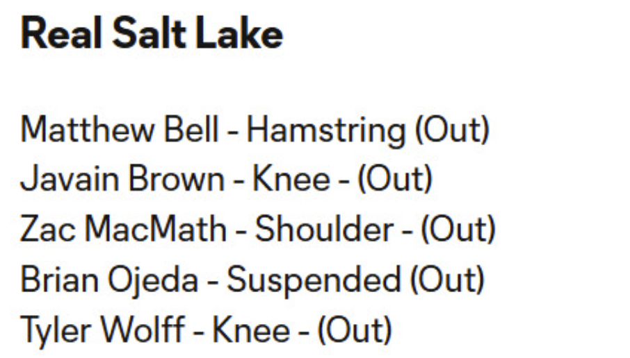 None of these players (aside from Ojeda) could be considered a starter. It’s a big departure from the reverse fixture where half of RSL’s backline was unavailable.