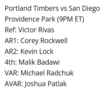 Last Timbers game officiated: June 13, 2025 vs. SJ 1-1 D