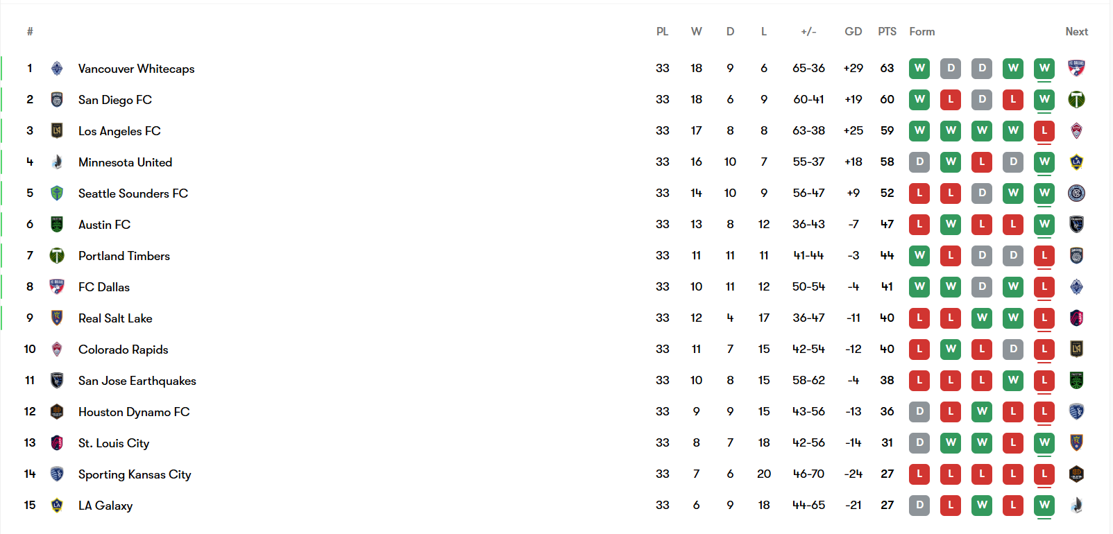 Even a full-strength Dallas squad would have trouble with the Vancouver Whitecaps. However, Petar Musa and Logan Farrington are both suspended. Dallas desperately needs to win to clinch a postseason berth because RSL, Colorado, and San Jose are still alive. I won’t bore you with the details of what could happen to the Wild Card teams. RSL travels to St. Louis, Colorado hosts LAFC, and San Jose hosts Austin. It doesn’t look good for Colorado, but I’m predicting a bit of chaos in spots 8-11. It’s Decision Day! Anything can happen.