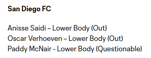 SDFC Injury Report & Projected Starting XI