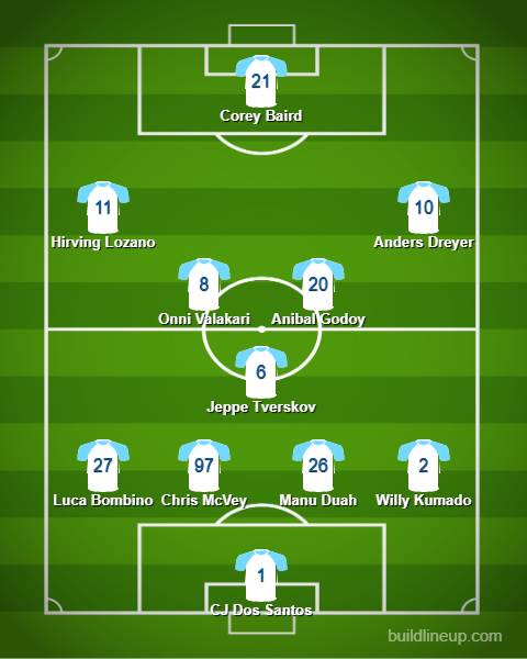 San Diego is playing for the top spot in the West, so I’m expecting a full-strength team. Bombino, McVey, Duah, and Kumado comprise their best backline. Tverskov has been the best defensive midfielder in the entire league. Valakari and Godoy offer good balance in the midfield ahead of Tverskov, but Luca de la Torre could start in place of either. Dreyer and Lozano are Sharpied in. The striker position is interesting. Baird was excellent in the first meeting between Portland and San Diego, but winter signing Marcus Ingvartsen is fully healthy after missing every game since August 17th. Amahl Pellegrino was a late addition from San Jose, and he’s been getting time as the lone striker in Varas’ 4-3-3. San Diego has an identity and options off the bench.
