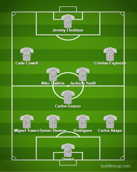 Some rotation, but not a lot of it. Besides Beason and Gruezo’s returns, there are a lot of similarities to the team that beat RSL on Saturday night. Players to watch off the bench are fullbacks Tommy Thompson and Paul Marie, as well as Ayo Akinola and midfielder Judson. This is a match-winning XI for the Quakes.