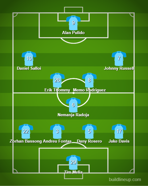 After going up 2-0 at halftime against Tulsa, Vermes decided to rest many of his key players who started the game. Rosero and Fontas should be the center back pairing. Bassong has been Vermes’ first choice at left back as of late, taking the job from Tim Leibold. Jake Davis played the full game against Tulsa, but he’s been undroppable for SKC. The midfield is first-choice. Salloi and Russell should be on the wings, while Pulido starts at striker. Although SKC has been struggling, this is a first-choice lineup that Vermes can pick from. And they need to win this game, so rotation isn’t really an option.