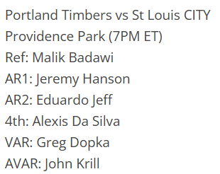 Last Timbers game officiated: May 4th, 2024 @CLT 2-0 L