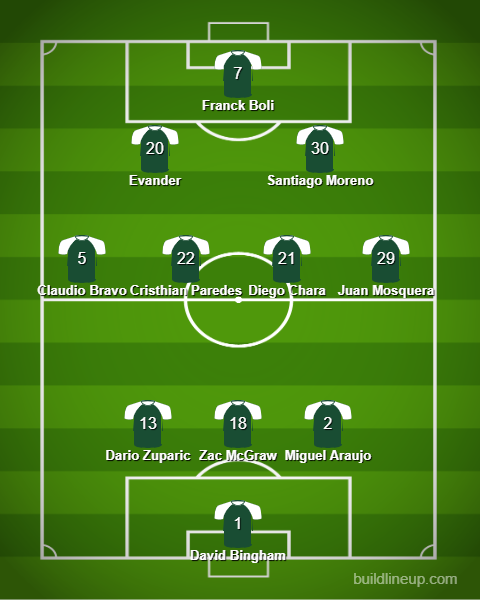 There are reasons I have for picking a back three, and I’ll get into them later. Most importantly, I think that Miguel Araujo makes his Timbers debut tomorrow night. If Savarese is looking at this match in a vacuum (which he said he is doing in the press conference) a back three/five makes a lot of sense. I’m going to talk a bit about Cristhian Paredes and Evander because a pattern is emerging in their play. They often swap positions. You see Timbers wingers change sides a lot, and I still can’t figure out what the trigger is for the winger switches. However, Evander and Paredes only swap when the Timbers are in their build-up phase. Evander drops deeper and Paredes pushes up so Evander can focus on making the initial ball to start attacks. Paredes is useful in the middle third to keep possession and allow Evander to join in once the ball reaches the final third. I don’t know how that specific tactic will work in this formation, but it is something I have noticed over the past couple games. I went with Bingham as the starting keeper because he got another clean sheet and if a keeper gets a clean sheet you don’t drop them for the next match. Pretty straightforward.