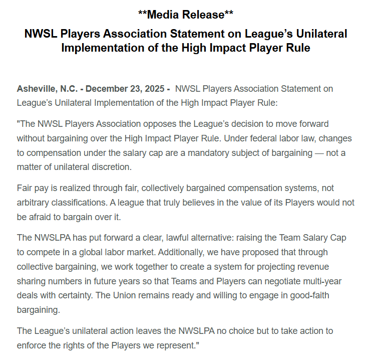 The NWSLPA rather quickly opposed the move on procedural grounds with the following media release: