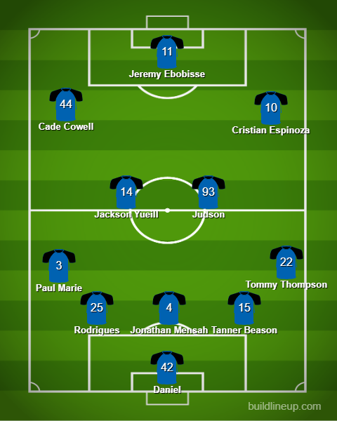 San Jose has been very loyal to the 4-3-3, but two major midfield absences might force a change to a back five. Tanner Beason had a good showing against Philadelphia, and he will return to the starting XI to get the team’s best XI on the field. That’s the mindset I chose to implement when I was picking this lineup. Both Paul Marie and Tommy Thompson will fill in at the fullback spots, with Thompson able to join in the midfield if needed. 2 out of their 3 DPs are midfielders, and both of them are absent (Gruezo, Monteiro). A two man midfield of Judson and the underrated Jackson Yueill looks to be Gonzalez’s best option. The front three are unchanged from the Philly match, and they are very dangerous in their own right. Cade Cowell has grown a moustache and improved his technique, Ebobisse is Ebobisse, and I’ve already explained Espinoza’s importance to this team. This is still a good XI, even with the depleted midfield.