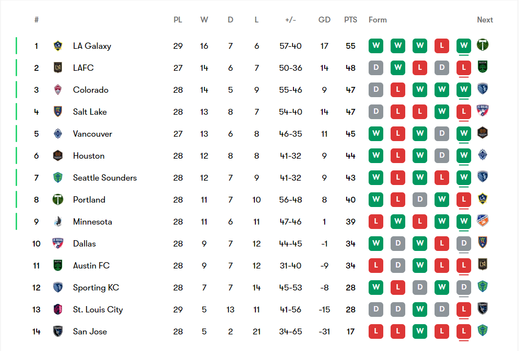 Now Portland is in 8th place after failing to win on the road again. Every other result went against them tonight. Minnesota won, Houston won, Vancouver won, and they are still 7 points out of 4th place. The Sounders host SKC tomorrow, so they will have a game in hand on their biggest rivals. But they could be facing a 4-point gap to 7th place. Their opponents on Wednesday just put on a performance for the ages in a wild 4-2 comeback victory against their biggest rivals. Their opponents on Saturday have been starting to slip up, but have been excellent at home this year. There is a serious likelihood of looking back at this 2-1 loss in Colorado on Decision Day and wondering what would have happened if one of those chances turned into a goal. However, the team doesn’t have time to focus on that. One-third of Gauntlet Week is done, and they have tripped at the first hurdle. Now they have to recover for the second one, which will thankfully be at home. They scuffed their opportunity to make a statement against a team that they put to the sword twice already in 2024. Another six-pointer awaits.