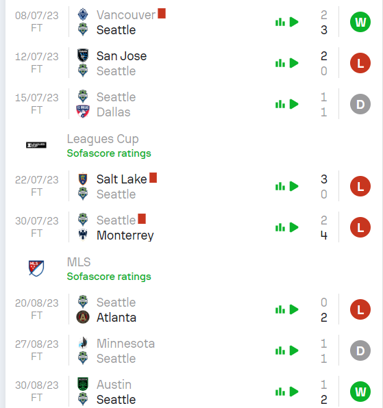 These are the last 18 matches the Seattle Sounders have played in all competitions. Their record is 5-5-8. This includes the two losses in Leagues Cup, where they continued to innovate by becoming the first Leagues Cup team to blow a 2 goal lead in their match against Monterrey. The fans continue to show up to Lumen Field, but they’re not getting their money’s worth. 2-3-4 is an ugly home record, and it is nowhere near acceptable for the fans who wear fake green and constantly scream for their team to fight and win. The “Fight and Win” has been absent. Sure, there are a few green dots in those images shown above. But only winning two home games in the span of four months is very bad. You’re supposed to have an advantage in those games. So who can be blamed for this horrific stretch in 2023?