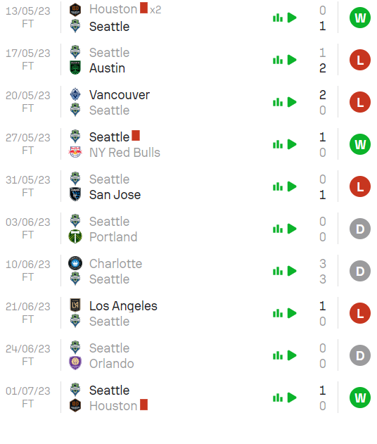 The fans are fed up. The team has been slumping. The results are unacceptable. This is a description of several teams in Major League Soccer, but there’s only one team where all of these complaints are valid while sitting safely in the playoff positions. The Seattle Sounders continue to innovate. They comfortably sit in 3rd place in the Western Conference; 7 points clear of the playoff line. So what is the genesis of this incredible frustration from the team that can never stop inventing? Let’s take a look at some recent results to get a better understanding of this frustration.