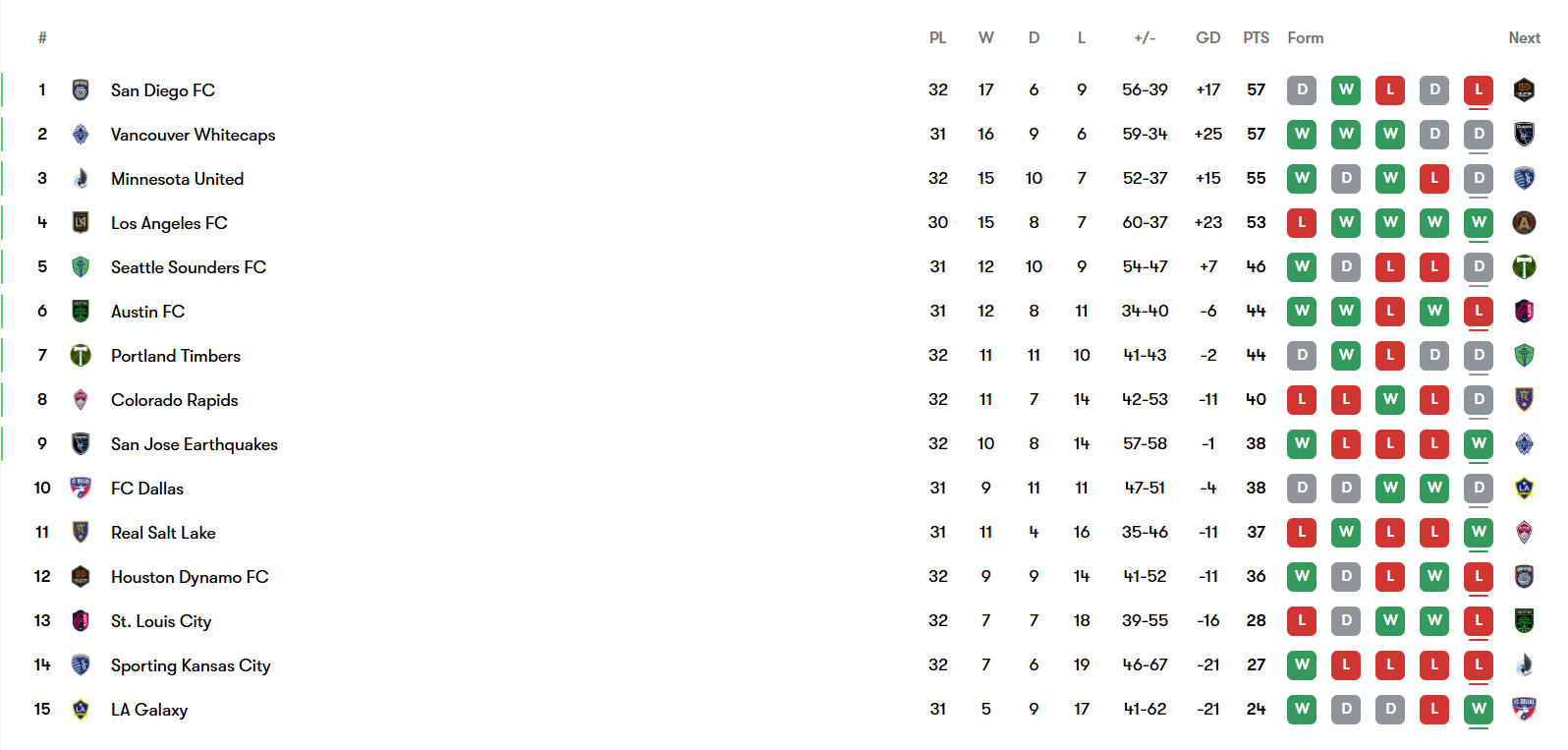 The Timbers can leapfrog Seattle and (potentially) Austin with a win tomorrow. However, if they lose, they can’t drop out of 7th place. It feels like I’ve been saying that for a month.