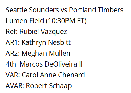 Last Timbers game officiated: August 17, 2025 vs. CIN 3-2 L