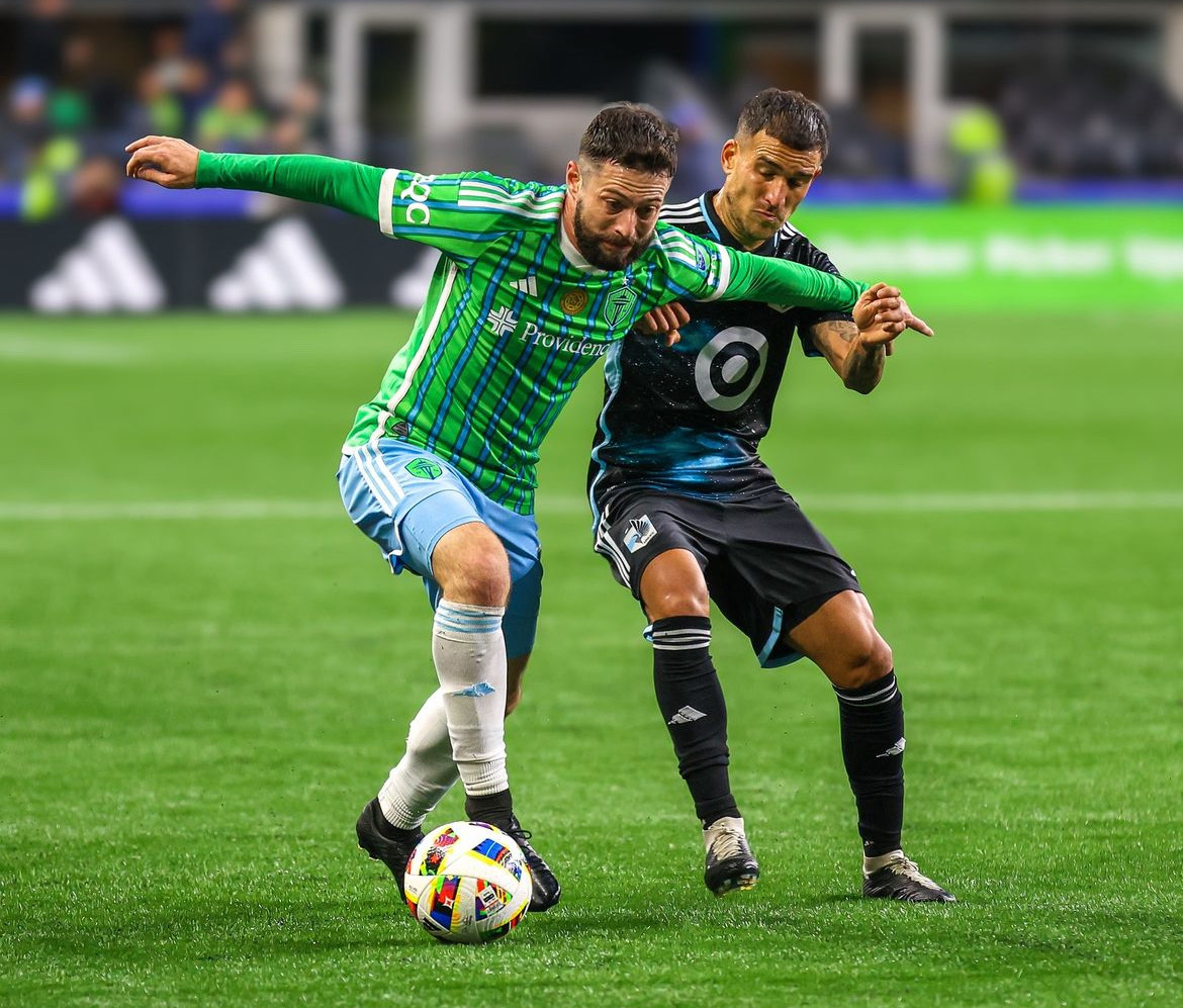 The Sounders’ defensive strategy against Minnesota’s powerful forwards Jeong Sang-bin and Bongokuhle Hlongwane was to slow down and interrupt them on their breakaways just enough to allow the back line to regroup in time to shut down their attacks.