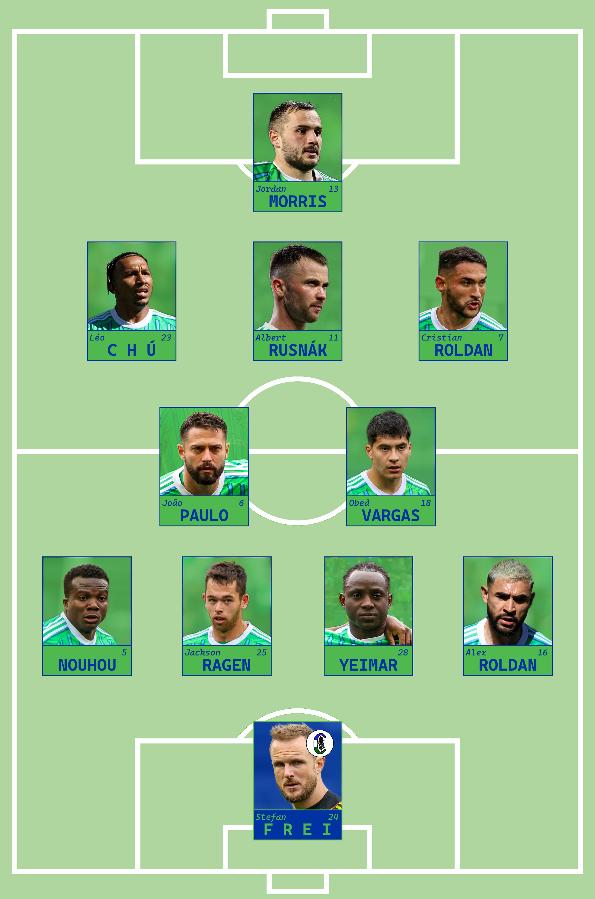 The starting lineup looked like this for Seattle, as Schmetzer went with a 4-2-3-1 as usual: