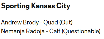 Brody hasn’t played since March 1st. Radoja made a substitute appearance against STL last weekend but I expect him to make the matchday squad.