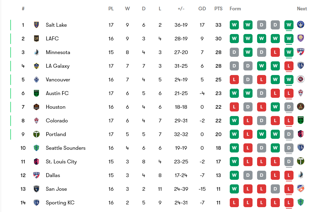 After tomorrow’s game, the Timbers will have played 18 MLS matches in 2024. They will be the first Western Conference team to reach that number. But the rest of their matches before the Leagues Cup break (aside from one) are against Western Conference opposition. That puts them in position to nullify other teams’ games in hand. Only three teams in the West have won 3 of their past 5 games. The Timbers are one of them, and the other two occupy the top two places in the table. There is an awful lot of negativity surrounding Timbers discourse online, and I’m completely confused why. Yes, this season has started off slowly. When do Timbers seasons ever get off to a fast start? Yes, the defense has been a serious problem. But the Timbers’ recent uptick in form has been buoyed by a defense that has been steadily improving. The season has never been decided in the opening months of the year. This club is the poster child of that. After this game, the Timbers will have an 11-day gap between games, which is the longest break so far this season. This team was “disappointed” after the draw against Houston. They thought that they deserved more from that game. Now they must hit the road, and try to enter an extended break with some tangible momentum. The visitors are unbeaten in three, while the hosts are winless in four. Time for the Timbers to win their second consecutive road game.