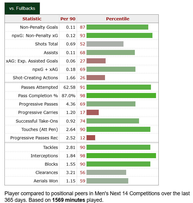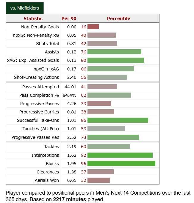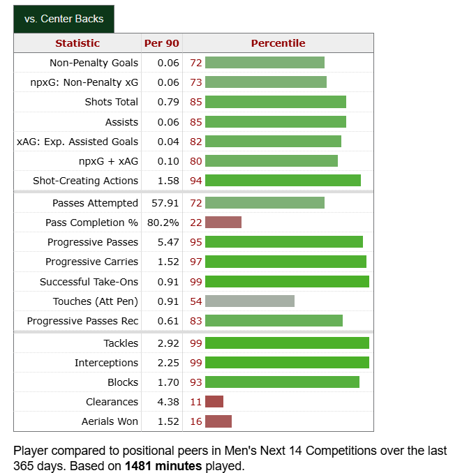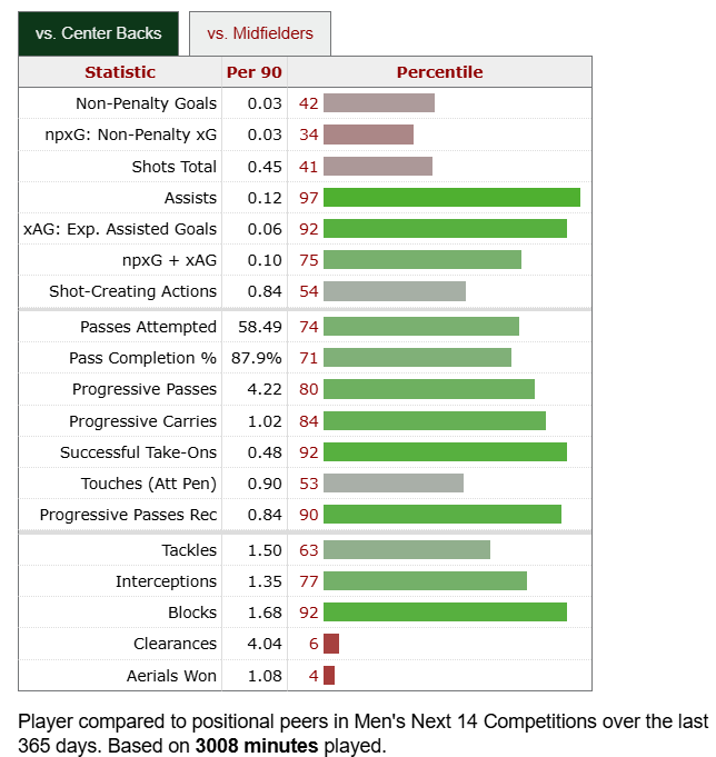 Two years ago, I was putting Rodrigues in Defender of the Year conversations. The Quakes scraped into the playoffs ahead of the Timbers, and their Brazilian stalwart was a huge reason why. This chart is from the past year, when he was still wildly productive despite not having a clear lock on a starting job. He just turned 28 in October, so he’s very much in his prime. I see a player that can become a long-term partner for Surman. He excels in all facets of the game, and somehow he gets no national recognition. I sense a future Timber. Especially with a base salary of $700K in 2025. He’s in the price range, no doubt. But there is a possibility that he returns to South America.