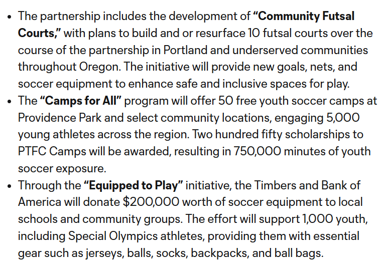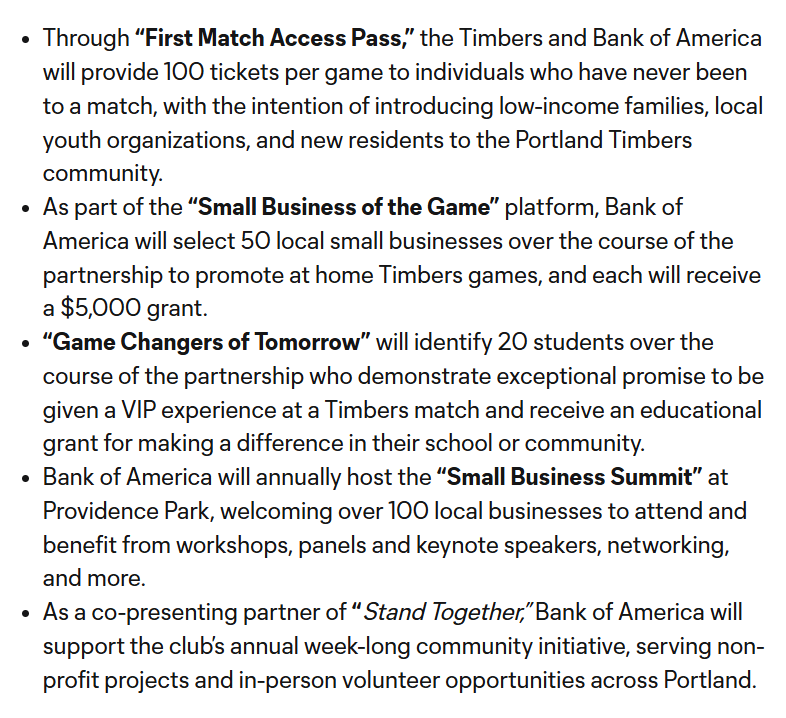 Bank of America is also pledging their funds to the community of Portland (and those tax-evaders in Southwest Washington). There are two avenues where this will play out: increasing access to soccer for children and supporting small businesses.