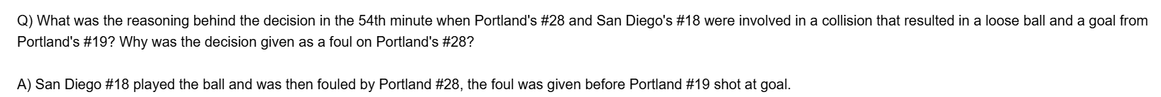 I had to pull the pool reporter card after watching a decision like this. I don’t think it’s worth getting into the mind-numbing and horrendously organized process that is the only avenue for referees to answer questions about their decisions. Because of some errors on San Diego’s end (the home team is in charge of sending the link to the pool reporter form, which was not delivered to me until 9 PM [almost 10 minutes after the final whistle and 5 minutes after the deadline for pool reporter questions to be submitted]) Freemon and his team were unable to answer my question themselves. This system is so broken, but now is not the time to expand further on that. Instead, let’s read PRO’s statement regarding this call.