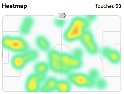 He was only on the field for the final 15 minutes, yet he accumulated 3 defensive actions compared to 4 touches. Solid!