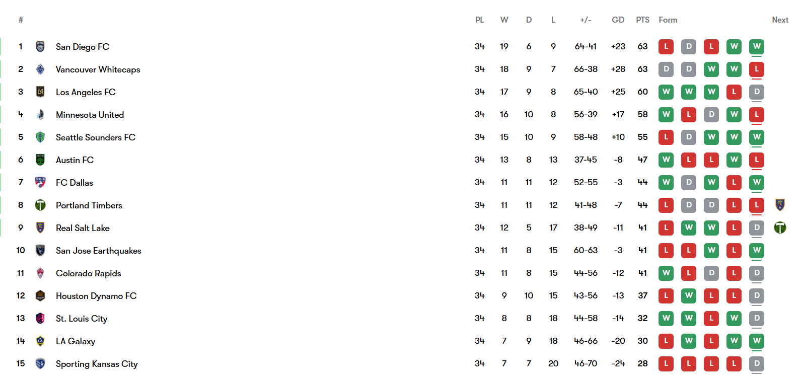 The Wild Card Game awaits for the Timbers. RSL was able to hang on to 9th place and will travel to Providence Park on Wednesday. Portland’s former fortress is now a place for opposing teams to celebrate. The Timbers finished the 2025 regular season with the 3rd-fewest home goals in their MLS history. They also finished with 27 points at Providence Park; tying their putrid 2012 campaign for the second-worst home record in their MLS history. Real Salt Lake contributed to that poor home record with a 1-0 win back in July. Three days after another humiliating home defeat, the Timbers have fallen far enough to get one more home game.