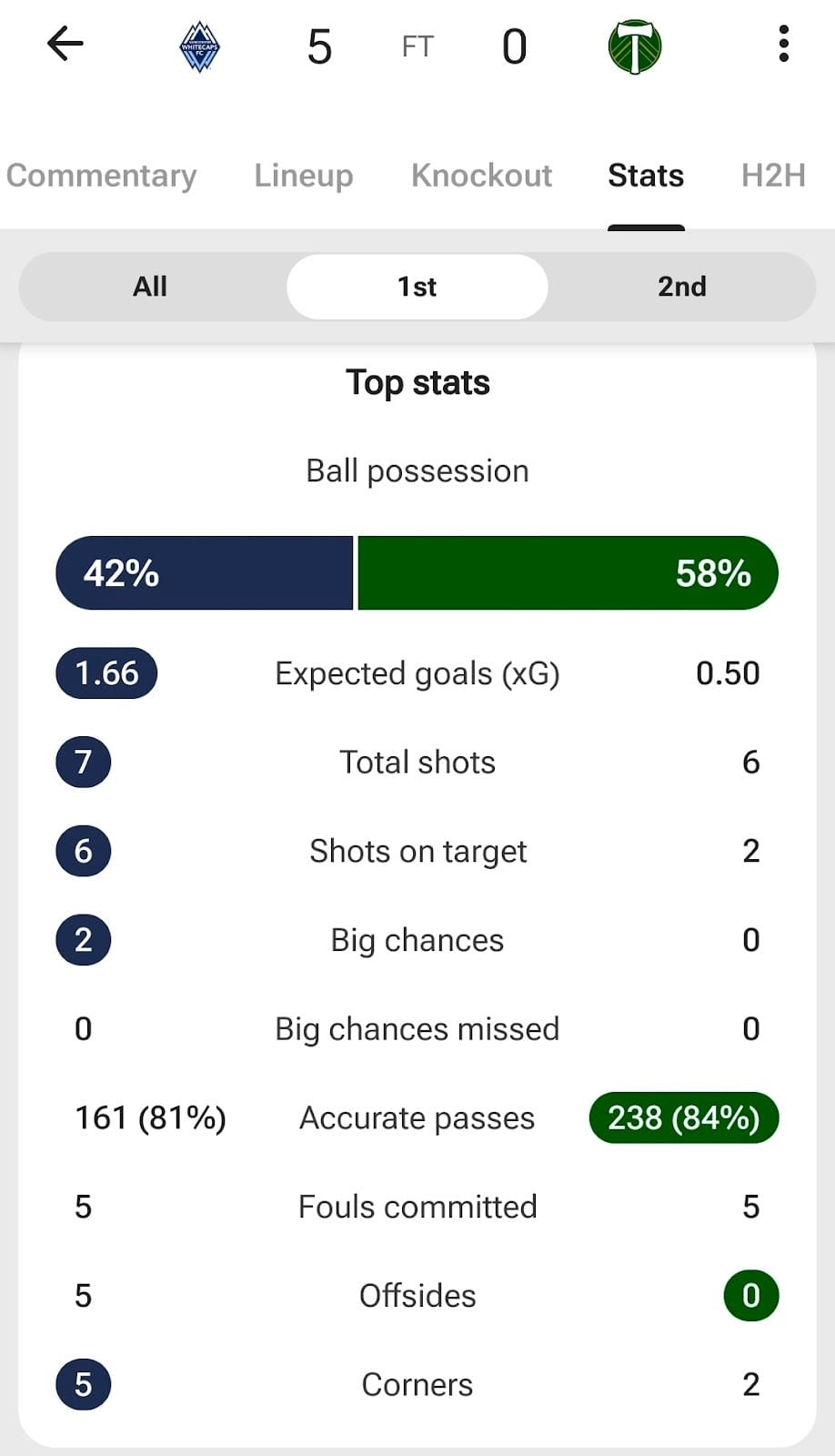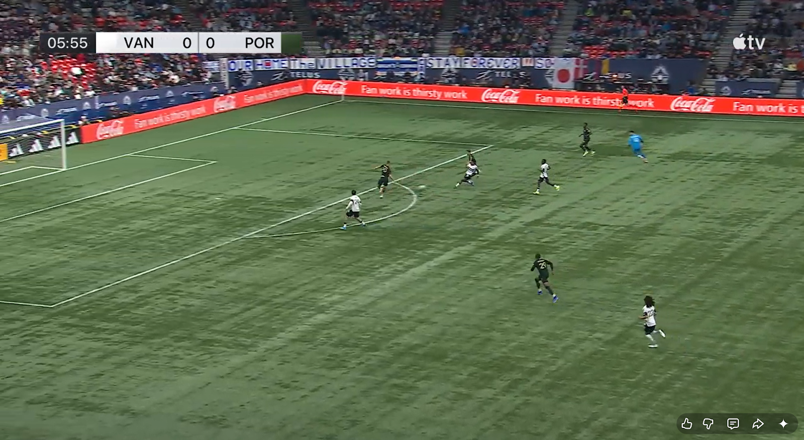 This game began with a fair amount of testing. Both sides probed into each other’s halves to see which one would be able to find a breakthrough. Vancouver didn’t have to wait long to take the lead. In the 6th minute, a Yohei Takaoka long ball (which was technically a clearance) bypassed Portland’s high line and forced James Pantemis to come out of his goal. Well, it didn’t force him to leave the safety of his box, but he did it anyway. Edier Ocampo latched onto the ball, took a touch past the Canadian goalkeeper, and still put the ball in the bottom left corner despite having a wide-open goal to aim at. It doesn't matter where the shot is placed; they all count the same. Vancouver took this early lead in the 6th minute.