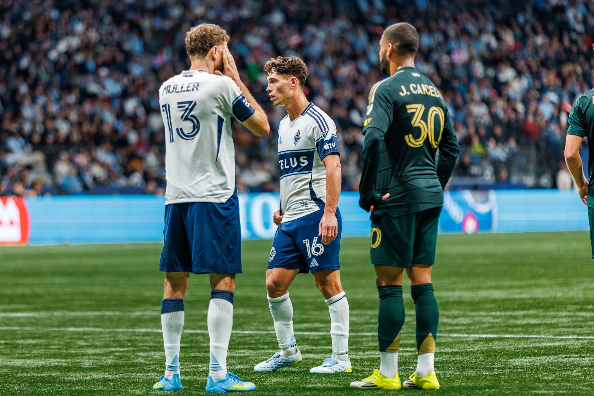 Vancouver kept Portland pinned, but their insistence on only creating cutback opportunities failed to result in a tying goal. Most of those cutbacks were blocked, but others rolled free into the box without a target to latch onto them. Substitute Bruno Caicedo (giving each team a Caicedo making their debut, that’s a fun fact) tested Pantemis with a well-struck shot from outside the box in the 76th minute, but the Canadian goalkeeper held onto the rapidly-moving ball. The Whitecaps kept attacking, but seemed further and further away from the killing blow. And then, in the 89th minute, their consistent pressure paid off on a fluke.