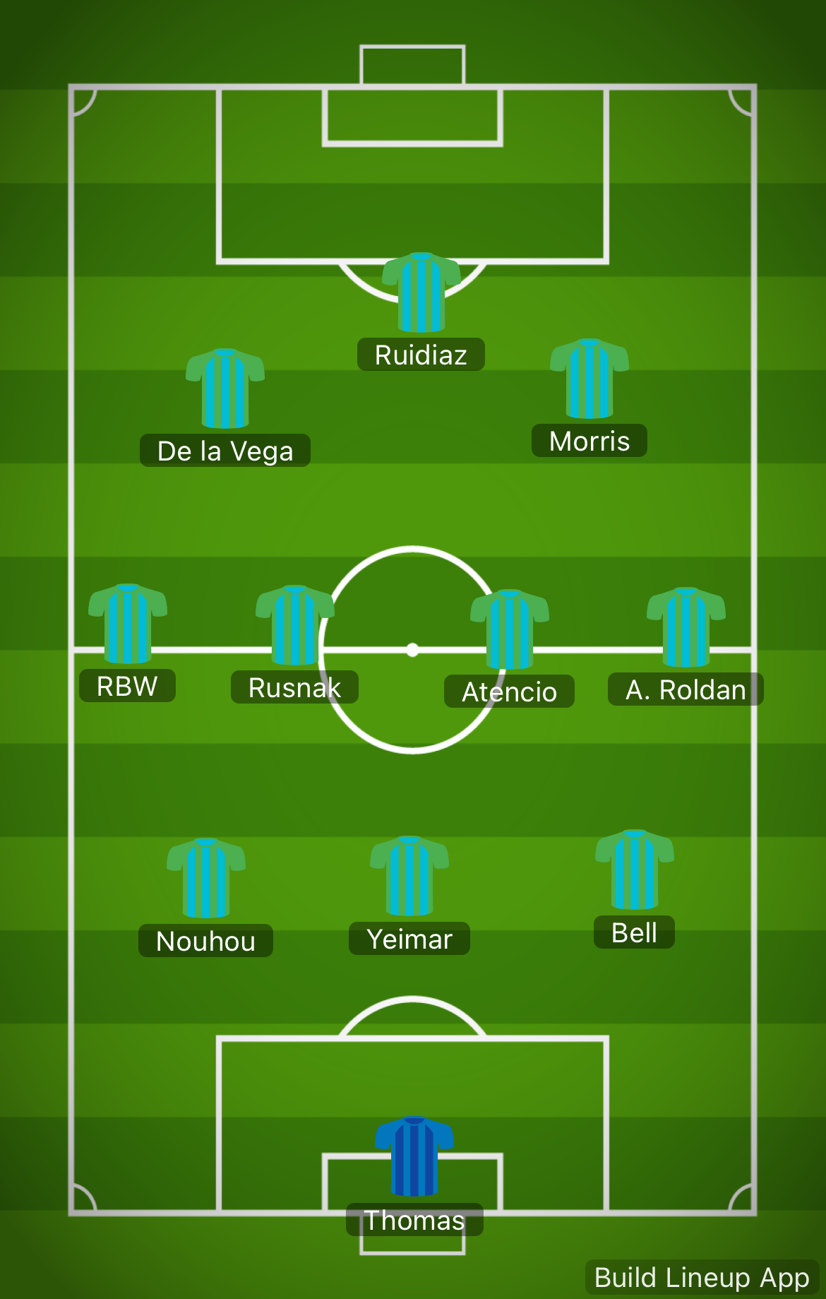 I went with a two-person midfield because this formation makes sense. Rusnak has been arguably our most important player this season, and his creativity and ability to control the game's tempo are unmatched. He has been known to put in a defensive shift when needed, and having three defenders behind him allows him to move a bit freely. Atencio deserves a shout because since returning from the Olympics, his dribbling has looked sharper, his defensive awareness has improved, and he will fight for every ball. I’m not saying that JP or Obed don’t, but they both got done by LAFC three times this season, so it might be time to switch it up.