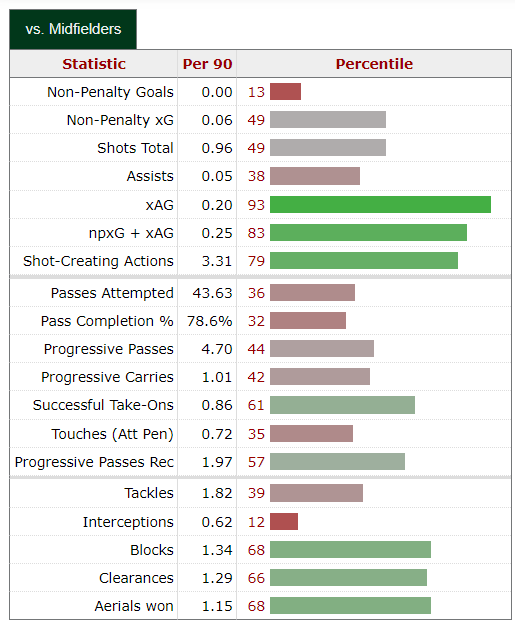 One number here is very intriguing. 3.31 shot-creating actions per 90 is very good for a central midfielder. In a weak Colorado team, he isn’t a dynamic playmaker, but he’s in the right areas to create chances. But he’s not expected to start. So can we expect from his appearances on the pitch?
