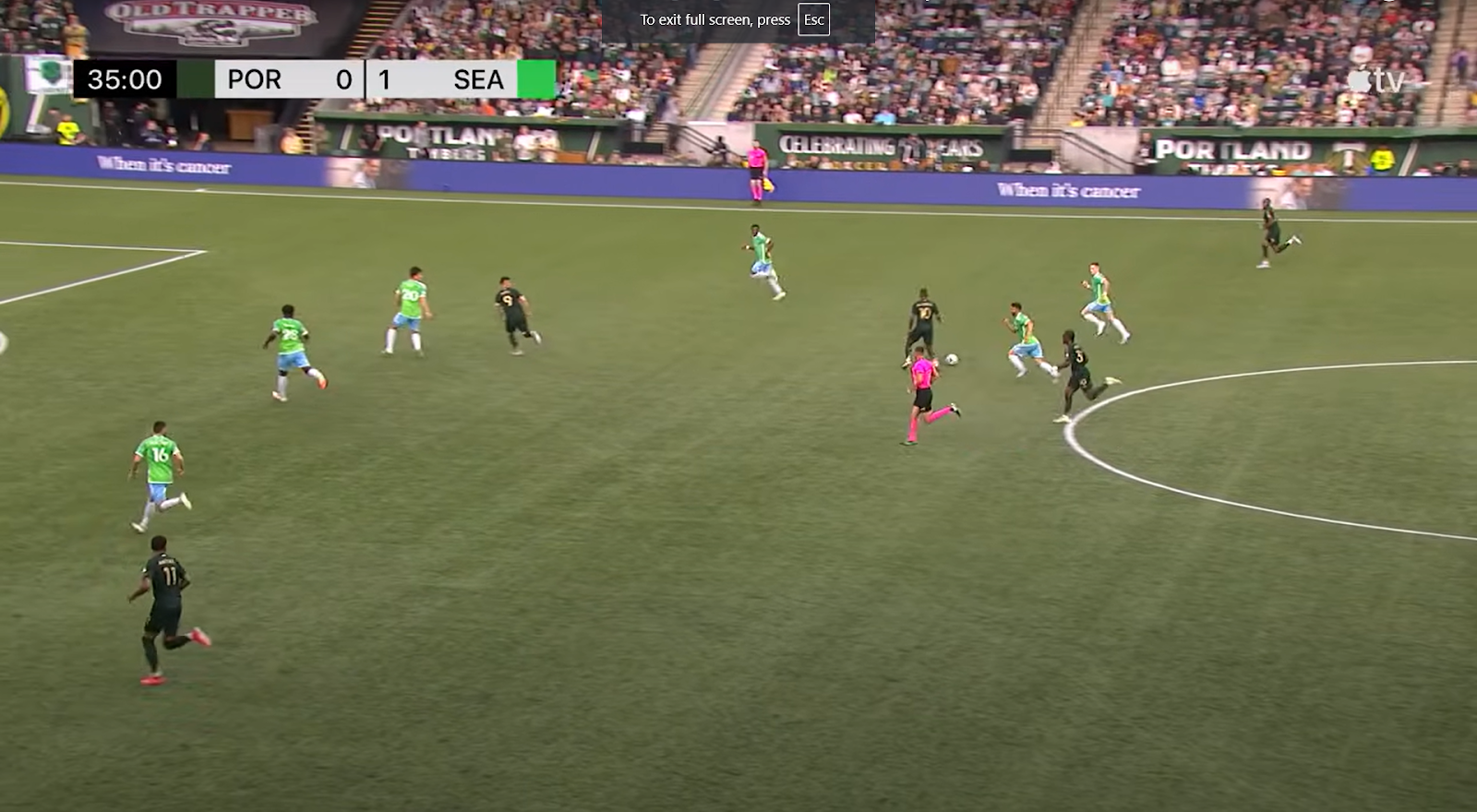 Here’s the last Da Costa-Evander comparison: that rotation between DDC and Moreno wouldn’t have occurred if Evander was in Da Costa’s shoes. This is why Da Costa’s tendency to float out wide can be very dangerous if utilized correctly. Although this was Portland’s only attacking bright spot during a rivalry game, it’s the most repeatable goal they’ve scored all year. And it can be executed from either wing. Da Costa is not going to be the box-crasher like Evander; he’ll be the provider. Once again, shoutout to Felipe Mora who deserves an assist on this goal. For one brief moment, Portland’s attack looked outstanding.