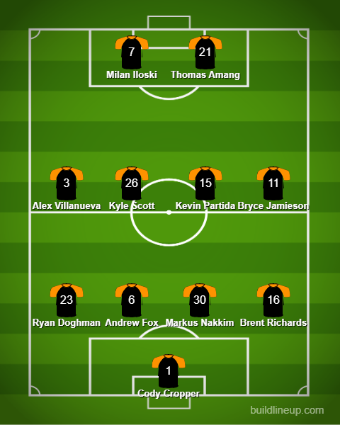 OCSC play in a 4-4-2, and there are only two notable names on their roster. One of which is former MLS goalkeeping goofus Cody Cropper, and the other is last year’s top scorer Milan Iloski. So far, Iloski has 3g/1a in OCSC’s USL campaign, and scored twice in their 5-0 Open Cup win over Capo. Another player of note is winger Bryce Jamieson, a 17-year old who is already getting looks from MLS clubs. This is my prediction for their starting XI.