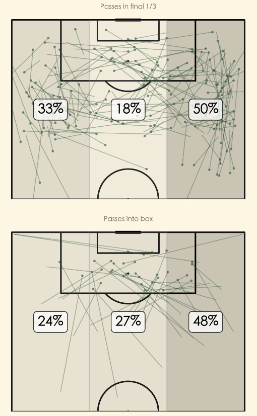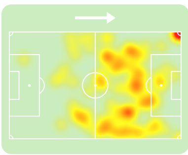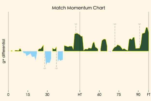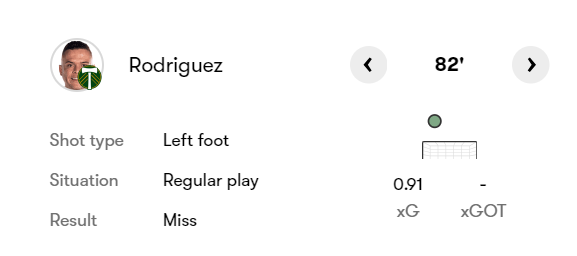 The xG value of this chance is almost 4 times the value of the chance that he ended up scoring. It was a rough night for him, but he never let his repeated failure to score easy chances get him down.