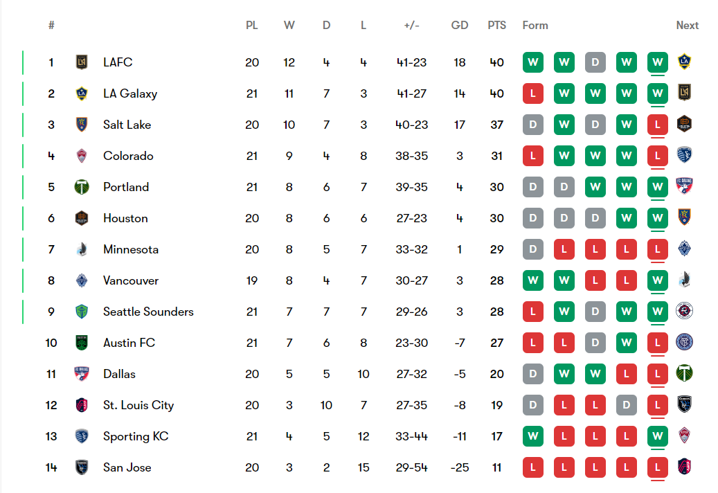 “These comebacks are part of our identity now. We never know when we’re beat,” Phil Neville told reporters in the post-game press conference. Although the head coach hasn’t been here for that long, he understands what Dairon Asprilla means to Timbers fans. He used him as a supersub rather than starting him, and his shrewd changes kept the Timbers fully on the front foot in the second half. “20% tactics, 80% mentality” means that good vibes are essential to the Timbers’ success. Providence Park delivered on the vibes tonight, and Neville thanked the supporters for “winning the game for us again.” That’s now 7 games in a row without a loss, and the 3rd straight victory since the bye week. Where are the Timbers now in the standings?
